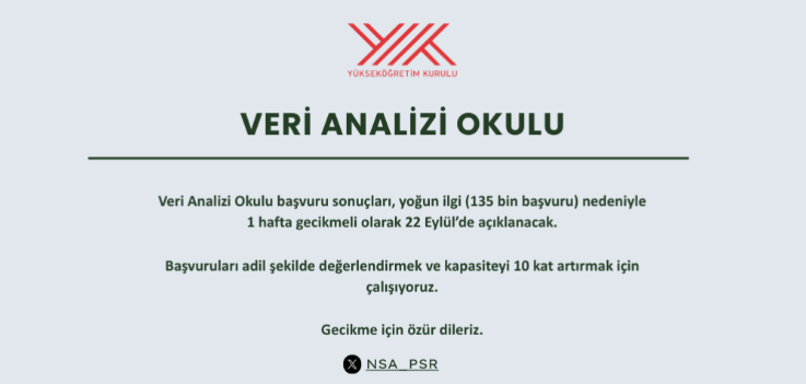 “Veri Analizi Okulu” başvuru sonuçlarıyla ilgili son durum ne, ne zaman açıklandı, nasıl öğrenilir gibi sorularla karşılaşanlar için gelen güncel haberleri sizinle paylaşıyorum.